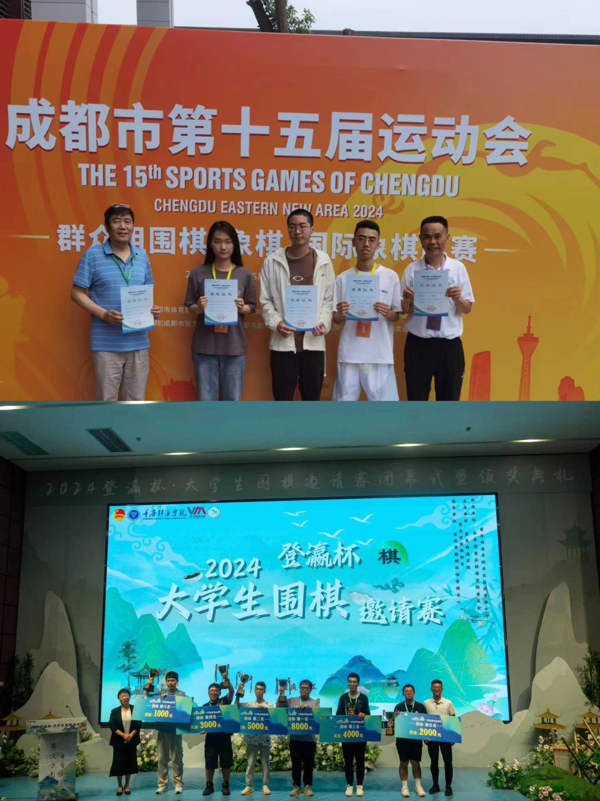 在成都市第十五届运动会群众组围棋比赛和在2024登瀛杯·大学生围棋邀请赛中,由王军和吴小丹老师带领,李锦澎、郭品瀚、曹子文、王冠桥、李赵晗同学组成的乐投中国围棋队分别取得了男子个人第八名、女子个人第八名、团体第五名和团体第二名,个人第七名的优秀成绩。